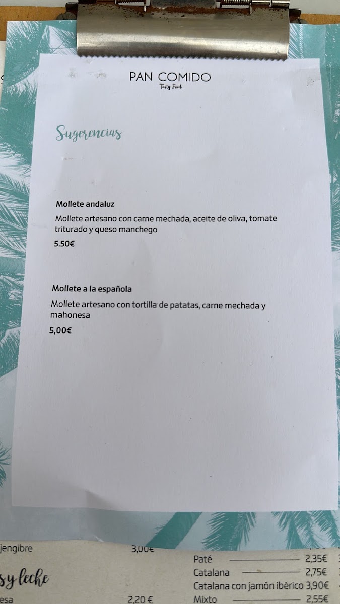 Pan Comido Menu